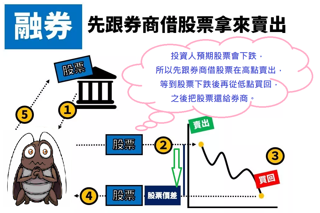 - 定義 : 向券商借股票拿來賣。
