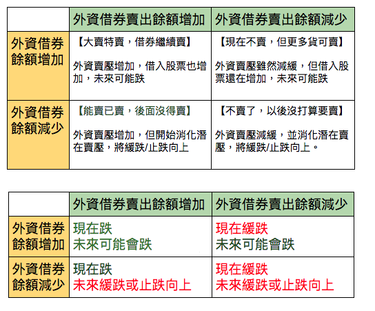 借券餘額、借券賣出餘額與外資