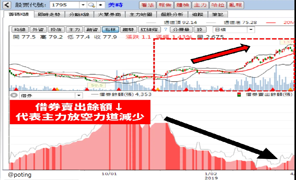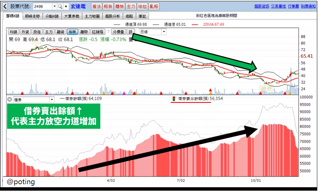 1.借券賣出餘額 + ↑ :代表法人未來對此檔看法偏空