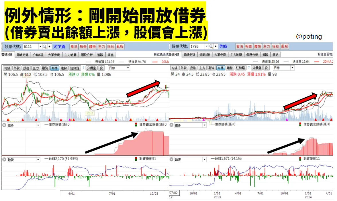 3.例外 : 通常剛開始開放借券時,通常都是搭配股價上漲行情。