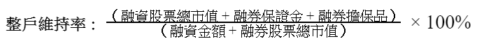 這是個估算值,因為融資金額與融券擔保品都是透過券商,會有手續費(0.1425%)的產生,加上融券是以先賣出的動作,所以會附帶證交稅(0.3%)等等,但這些"額外費用"都是千分之幾計算的,對於整戶維持率的影響算微乎其微,況且現在有理財計算app很方便,蟑螂在此不做廣告,有興趣的人可以找看看喔。